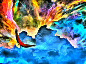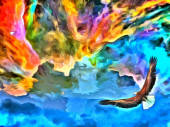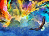 Zdjęcie "Surrealistyczny obraz. Orzeł leci w żywe chmury." może być wykorzystywane do celów osobistych i komercyjnych zgodnie z warunkami zakupionej licencji Royalty-free. Obraz jest dostępny do pobrania w jakości wysokiej rozdzielczości do 5760x3840.