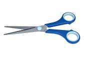 Nożyczki biurowe z uchwytami z tworzywa sztucznego, na białym tle.