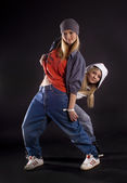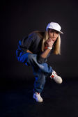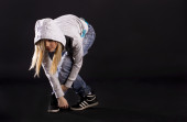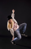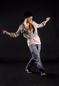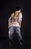 taniec nowoczesny, hip-hopu dziewczyna tancerz na czarnym tle.