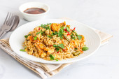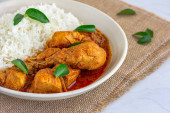 Zdjęcie "Weganie tajski żółty curry z kalafiorem ozdobiony Cilantro i Lemon Top Down zdjęcie na białym tle" może być wykorzystywane do celów osobistych i komercyjnych zgodnie z warunkami zakupionej licencji Royalty-free. Obraz jest dostępny do pobrania w jakości wysokiej rozdzielczości do 5760x3840.