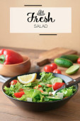 Talerz smacznej sałatki warzywnej na drewnianym stole