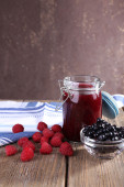 smaczne dżem z jagody w słoikach na drewnianym stole