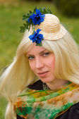 blond kobieta w elegancki kapelusz