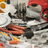 Zdjęcie "kupie narzędzia. Multimetr, klucza, klucz, kask i inne" może być wykorzystywane do celów osobistych i komercyjnych zgodnie z warunkami zakupionej licencji Royalty-free. Obraz jest dostępny do pobrania w jakości wysokiej rozdzielczości do 5760x3840.