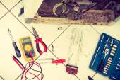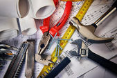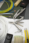 kupie narzędzia. Multimetr, klucza, klucz, kask i inne