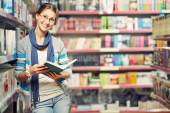 młody beautifulyoung piękna kobieta sklepów w księgarni