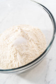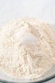 Mieszanie ciasta chlebowego w samodzielnym mieszalniku kuchennym do pieczenia patriotycznych cynamonowych skrętów.