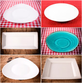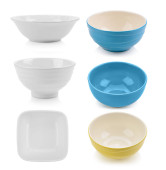 ceramiczna miska i płyta na białym tle
