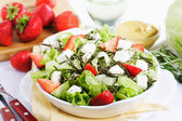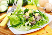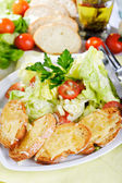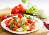 Sałatka makaron z pomidorami serwowane w białej płytce