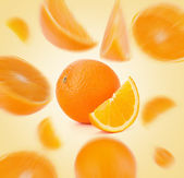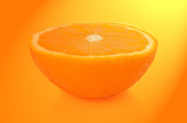 pięć świeżo ścięte pomarańczowy połówek ułożone przez żywy żółty i złoty efekt świetlny.