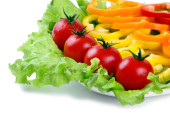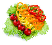 Mix świeżych warzyw z kolorowe papryki na liściach sałaty
