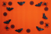 Cztery ozdobne nietoperze na szarym tle. Halloween