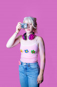 Zdjęcie "Izolowana biała młoda kobieta korzystająca ze smartfona i słuchawek słuchających muzyki lub oglądających wideo surfing w sieci - przycięty baner reklamowy" może być wykorzystywane do celów osobistych i komercyjnych zgodnie z warunkami zakupionej licencji Royalty-free. Obraz jest dostępny do pobrania w jakości wysokiej rozdzielczości do 5760x3840.