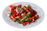 Pomidor z pietruszką i sałatka z kopru na białym talerzu. Zdrowe jedzenie na odchudzanie, wegetariańskie jedzenie. Świeże warzywa pokrojone w talerz.