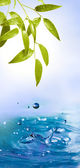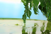 liście zielone z odbiciem w wodzie