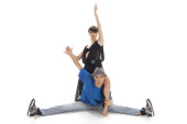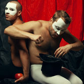 kobieta wampir atakuje człowieka i patrząc na kamery. na białym tle na tle czystego. Więcej moich zdjęć wysokiej rozdzielczości halloween tematu.