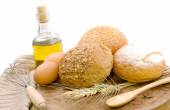 świeżego pieczywa, jajek, mąki i oleju na pokładzie drewna