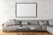 Biała elegancka kanapa w minimalistycznym stylu życia brązowy pokój - renderowanie
