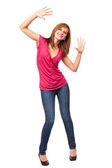 portret szczęśliwy młoda kobieta na białym tle nad białym