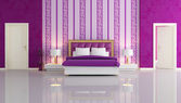 fioletowy nowoczesna sypialnia z ramą z kolorowych róż - renderowania - sztuka obraz na ścianie są mojej kompozycji renderowania