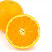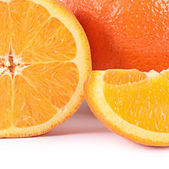 bliska przechwytywania wybór całą i połowę pomarancze nad białym.