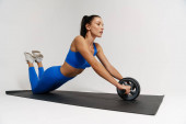 Zdjęcie "Młoda biała kobieta fitness w odzieży sportowej z kucykiem stojąca na białym tle ściany, podnosząca małe ciężarki" może być wykorzystywane do celów osobistych i komercyjnych zgodnie z warunkami zakupionej licencji Royalty-free. Obraz jest dostępny do pobrania w jakości wysokiej rozdzielczości do 5760x3840.