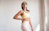 Zdjęcie "Młoda biała kobieta fitness w odzieży sportowej z kucykiem stojąca na szarym tle ściany, pozująca" może być wykorzystywane do celów osobistych i komercyjnych zgodnie z warunkami zakupionej licencji Royalty-free. Obraz jest dostępny do pobrania w jakości wysokiej rozdzielczości do 5760x3840.