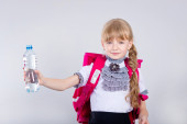 dziewczyna pitnej wody z butelki z tworzyw sztucznych