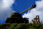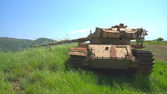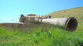 dużego kalibru pistoletu na starych zniszczonych zbiornika obok granicy syryjskiej