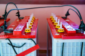 Zdjęcie "Stare akumulatory ładują się do odzyskiwania energii. Ładowanie akumulatora samochodowego za pomocą kabli rozruchowych wspomagających." może być wykorzystywane do celów osobistych i komercyjnych zgodnie z warunkami zakupionej licencji Royalty-free. Obraz jest dostępny do pobrania w jakości wysokiej rozdzielczości do 5760x3840.