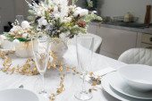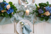 Zdjęcie "Uroczysty design stołu na bankiecie." może być wykorzystywane do celów osobistych i komercyjnych zgodnie z warunkami zakupionej licencji Royalty-free. Obraz jest dostępny do pobrania w jakości wysokiej rozdzielczości do 5760x3840.