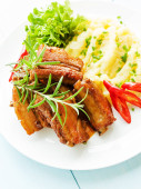 Zdjęcie "nogi indyka pieczona z warzywami. płytkie dof." może być wykorzystywane do celów osobistych i komercyjnych zgodnie z warunkami zakupionej licencji Royalty-free. Obraz jest dostępny do pobrania w jakości wysokiej rozdzielczości do 5760x3840.