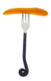 marchew plaster na widelec na białym tle biały ze ścieżką przycinającą.