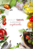 pomidory, szczypiorek, papryka, czosnek na białym tle. przykładowy tekst