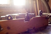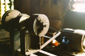 Piła tarczowa do obróbki drewna. Stary okrągły. Warsztat stolarski