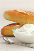 świeży jogurt serwowane w misce z przezroczystego szkła