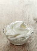 świeży jogurt serwowane w misce z przezroczystego szkła