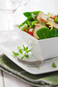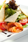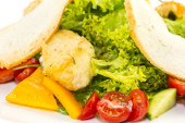 zdrowy obiad z zieloną sałatą z tostami i kozim serem