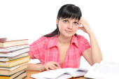dziewczyna z książek, odzwierciedla, na białym tle