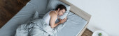 Zdjęcie "młody brunetka człowiek śpi w łóżku pod niebieski koc" może być wykorzystywane do celów osobistych i komercyjnych zgodnie z warunkami zakupionej licencji Royalty-free. Obraz jest dostępny do pobrania w jakości wysokiej rozdzielczości do 5760x3840.