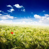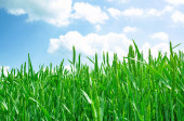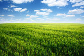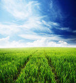 zielonej pszenicy władać z pochmurnego nieba niebieski