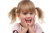 szczęśliwy uśmiechający się dziewczynki na białym tle w studio