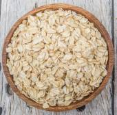 walcowane owsa na prosty drewniany puchar stary i pęknięty tabela
