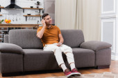 Zdjęcie "Mężczyzna cierpiący na ból głowy na kanapie " może być wykorzystywane do celów osobistych i komercyjnych zgodnie z warunkami zakupionej licencji Royalty-free. Obraz jest dostępny do pobrania w jakości wysokiej rozdzielczości do 5760x3840.
