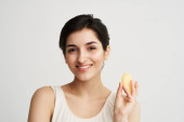 Piękna młoda kobieta je smaczne quesadilla w domu