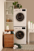 Zdjęcie "Wnętrze łazienki z nowoczesną pralką" może być wykorzystywane do celów osobistych i komercyjnych zgodnie z warunkami zakupionej licencji Royalty-free. Obraz jest dostępny do pobrania w jakości wysokiej rozdzielczości do 5760x3840.