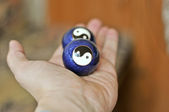 kobieta ręki trzymającej piłkę z symboli ying i yang