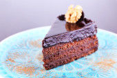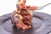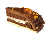 kawałek ciasto czekoladowe z orzechami. na białym tle.
