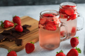 Smaczny truskawkowy napój z jagodami. Orzeźwiający napój, dieta i zdrowa koncepcja
