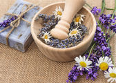 mydła barów z świeże kwiaty lawendy, jaśmin i rumianek